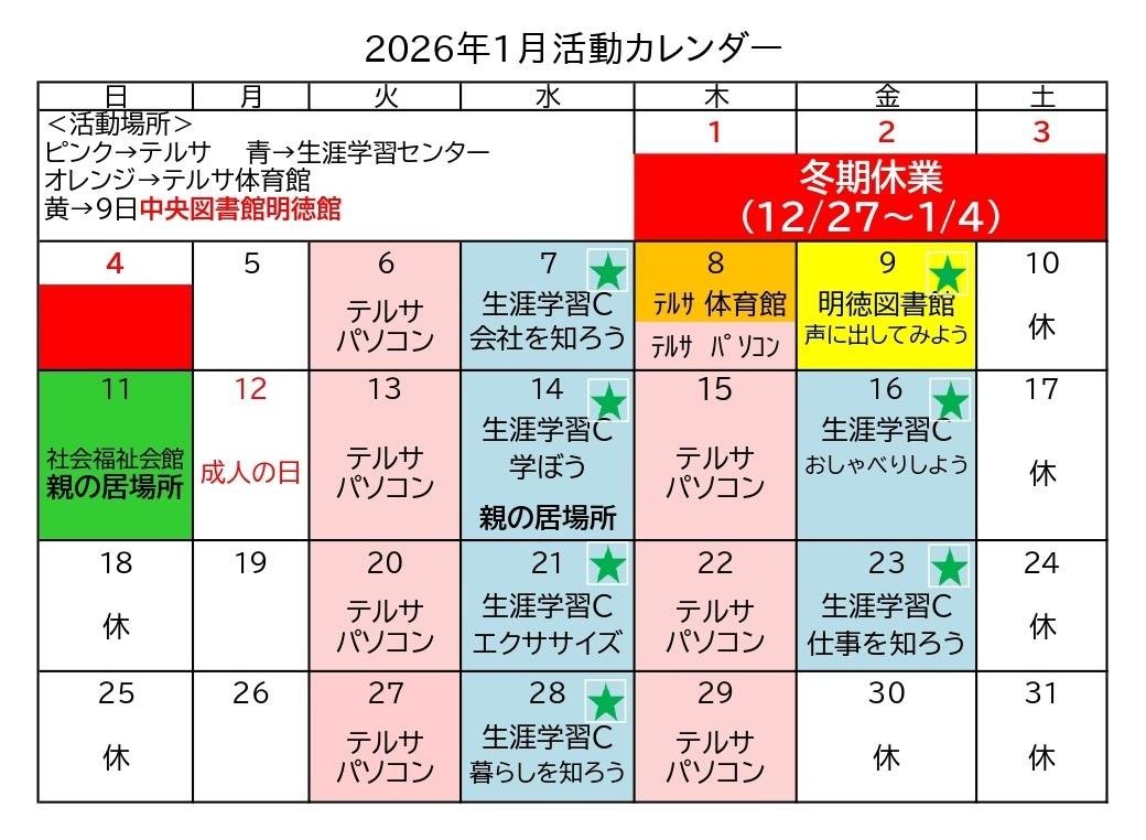 ■1月14日(水)14時~16時 生涯学習センター4階1研修室